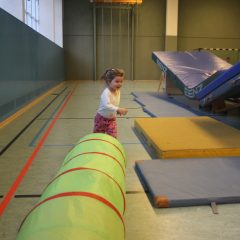Bei uns kann man ganz früh anfangen! Schon ab 1 Jahr haben Kinder bei uns die Möglichkeit, sich kräig auszutoben. Regelmäßig an den Wochenenden findet unser Angebot „Krabbeln und Spielen“ statt. Hier können sich Kinder von 1 bis 4 Jahren mit ihren Eltern oder einem:r verantwortlichen Betreuer:in der Familie in unserem selbstgebauten Indoor-Spielplatz mit vielen Möglichkeiten zum Balancieren, Klettern, Krabbeln, Schaukeln sowie einer Vielzahl von Spielzeugen und -geräten austoben und Spaß haben. Zu Beginn jedes Kurses leiten unsere Betreuer:innen ein gemeinsames Spiel an, das häufig zu den Höhepunkten unserer Jüngsten zählt. Die Angebote finden regelmäßig am Samstag- und Sonntagvormittag in der Sporthalle der Bötzow-Grundschule statt.